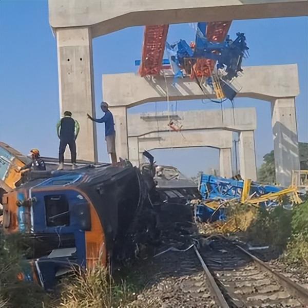 泰国总理阿努廷于周二晚间紧急赶赴一场致命的铁路事故现场。截至当时,这起发生在9时05分的撞击事故已确认造成32人死亡。一台正在吊运混凝土梁的起重机倒塌,砸中了泰国国家铁路局一列正在高速行驶的密封空调列车,随后引发爆炸和火灾。